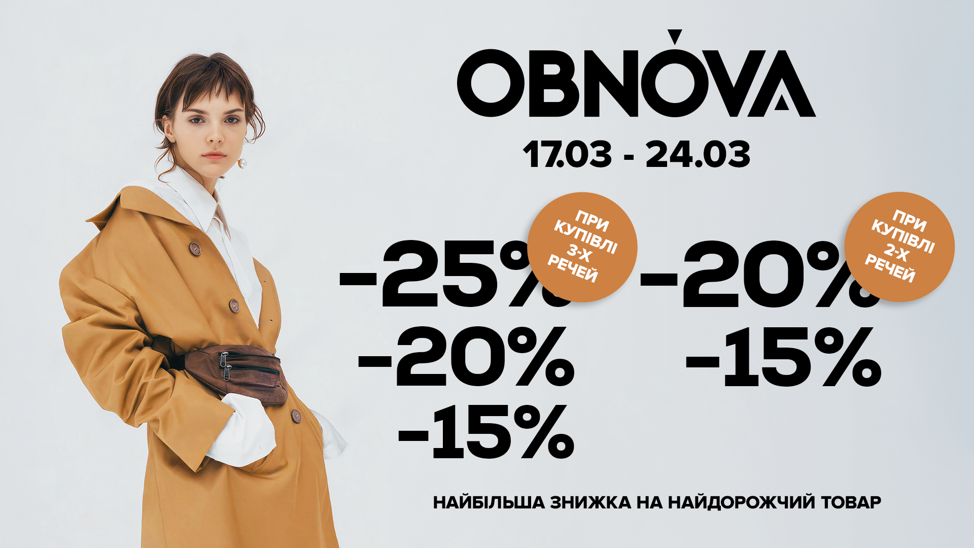 Лише з 17 до 24 березня, обирай новинки одягу, взуття та аксесуарів та отримуй знижку на кожну річ у чеку.