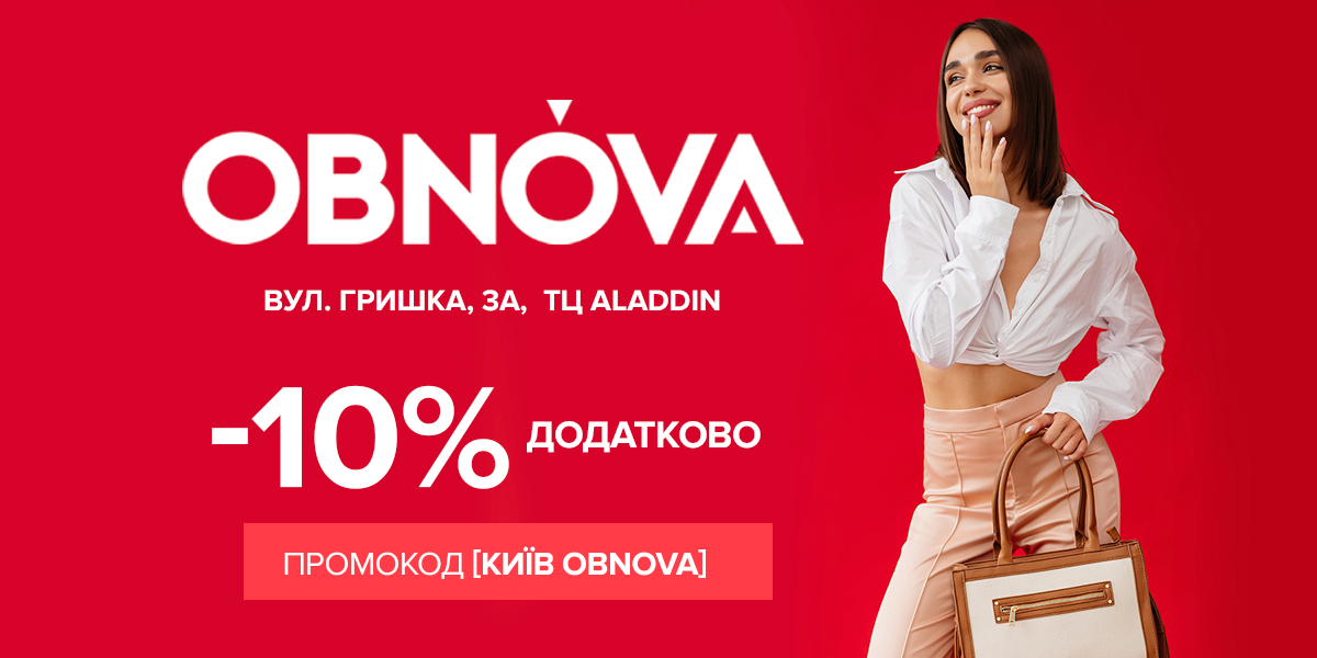 Хороша новина в ефірі — 14 жовтня відкривається новий магазин одягу, взуття та аксесуарів — OBNOVA! Називайте промокод [КИЇВ OBNOVA] і отримуйте -10% знижки.