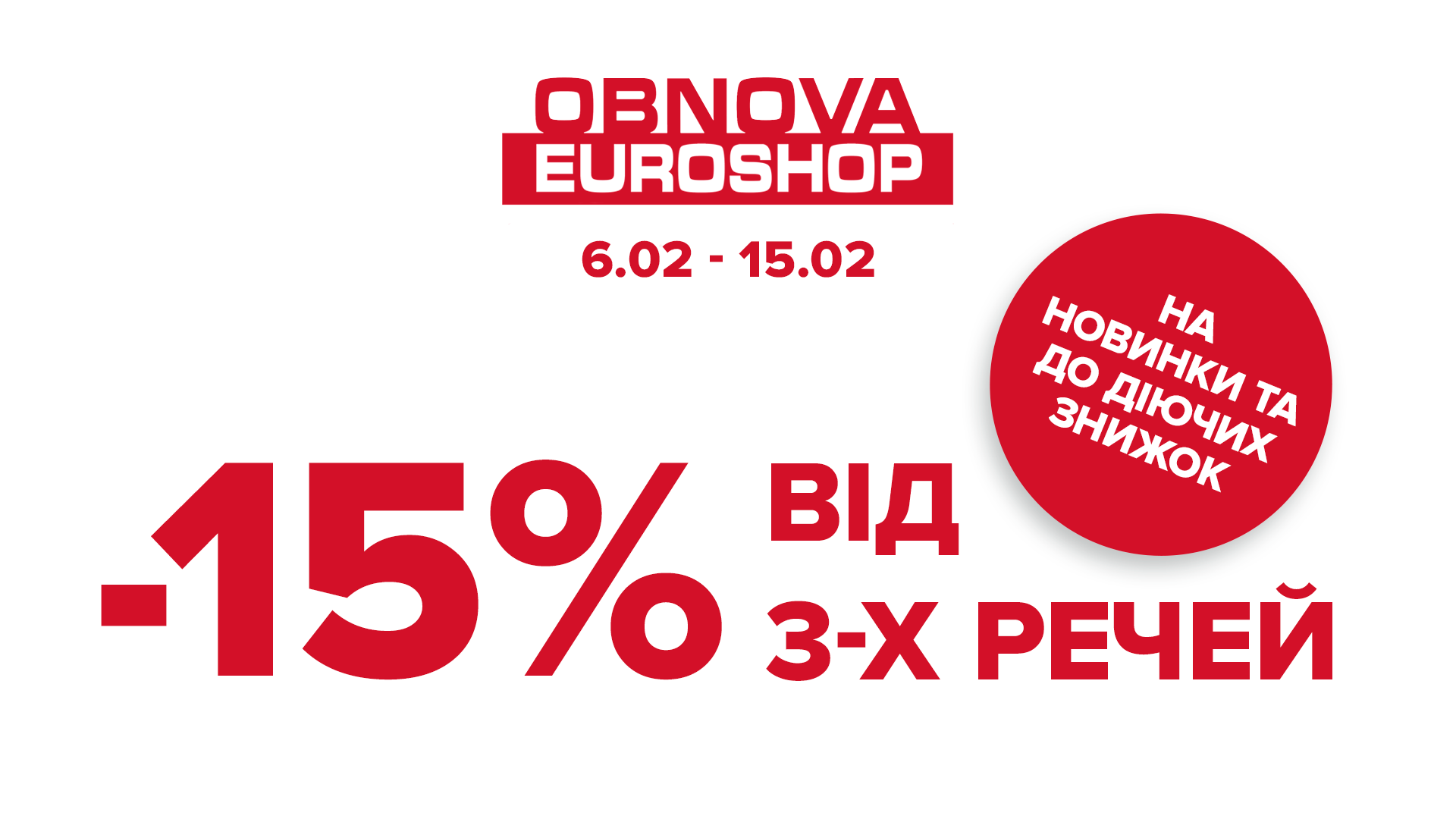 - Акція діє з «06» по «15» лютого 2026 року включно у мережі магазинів «ObnovaEuroshop», що розташовані за адресами: м.Вінниця, вул. Келецька 80; м.Вінниця, вул. Коцюбинського 4; м.Житомир, пл.Житній ринок, 1, ТЦ “Житній”; м.Київ, вул. Малишка 3А; м.Київ, пр. Степана Бандери 6; м.Київ, проспект Червоної калини 17; м. Львів, вул. Городоцька, 179, ТЦ “Скриня”; м. Львів, вул. Сихівська 16; м. Луцьк, пр.Волі, 27; м.Рівне, вул. Симона Петлюри, 22, ТЦ “Юляна”; м.Івано-Франківськ, вул. Гузара 49; м.Хмельницький, вул.Кам’янецька 11; м. Кам’янець-Подільський, вул. Першотравнева 9В; м.Чернівці, вул. Винниченка 20; м.Коломия, пл.Т.Шевченка, 2, Універмаг “Коломия”, м.Тернопіль, вул. Торговиця 11 (колишня Живова11), в магазинах «Obnova», що розташований за адресами: м. Рівне, вул. Грушевського, 2А; м.Івано-Франківськ, вул. І. Миколайчука 2, “Арсен”; м.Дрогобич, вул. Володимира Великого, 1-Р, ТЦ “Park”; в магазині «ObnovaNova», що знаходиться за адресою: м.Тернопіль, вул. Торговиця, 11 (колишня Живова, 11).